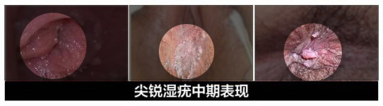 1、尖锐湿疣早期:表现为肉芽、疙瘩、小乳头等症状,逐渐增大增多,变为菜花状、鸡冠状;