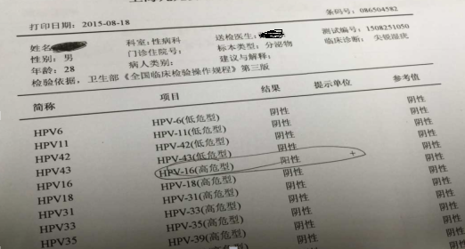 诊断标准:经过对湿疣病毒定性分型化验若:HPV 检测为阳性(+)为确诊, 阴性(-)为正常。