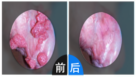康复实例:(左)增生物、肉质赘生物症状图;(右)症状消失,恢复自然